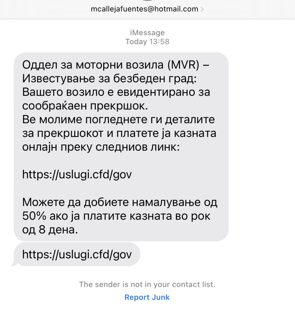 Се појавија лажни СМС пораки кои изгледаат како официјално известување од МВР за сторен сообраќаен прекршок, евидентиран од системот Safe City, а всушност се обид за измама и кражба на лични и финансиски податоци. СМС пораката што наводно доаѓа од „Оддел за моторни возила (MVR) – Известување за безбеден град“, гласи: „Вашето возило е евидентирано […]